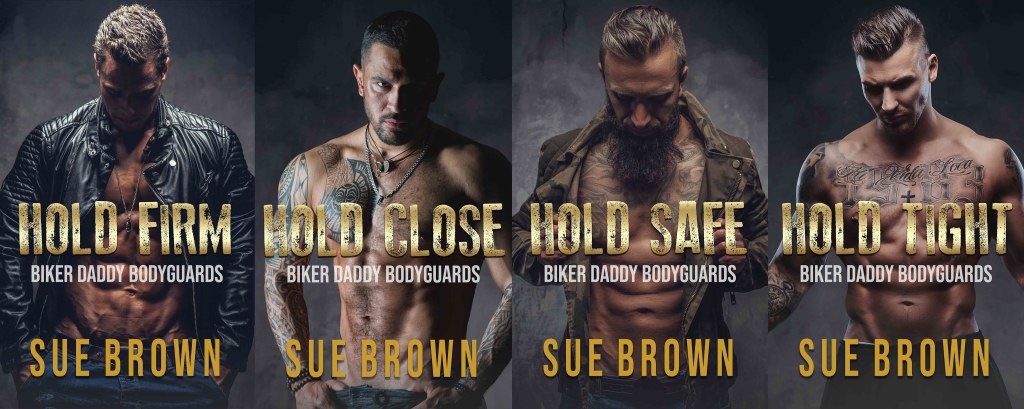 Biker Daddy Bodyguards Home NewsletterSue’s StoreSue’s Subscription EventsAll My BooksSeriesJ.T’s BarLyon Road VetsCollier’s CreekAn Isle StoryMorning Report SeriesSapphire Ranch Wolves SeriesAngel SecuritiesBiker Daddy BodyguardsDarker Daddy BodyguardsA Little Christmas seriesDetective Leon Peterson MysteriesThe Rhubarb EffectFrankieComplicated RelationshipsBearytales in the WoodStandalonesGabriel’s StormFinal AdmissionNothing Ever HappensThe Sky is DeadLast Place in the ChaletStill Loving YouThe Fireman’s PoleStolen DreamsThe Layered MaskA Boy UnleashedBox SetsIsle Series box setDarker Daddy Bodyguards box setBiker Daddy Bodyguards box setDating Mr. Right box setAngel Securities Box SetMorning Report box setLyon Road Vets Box SetFestive/Holiday StoriesSanta of the CreekSanta DaddyThe BackpackThe Clumsy SantaBells and BallsMy Christmas NemesisA Little Christmas! DannyLast Place in the ChaletMulti-author & Co-authored SeriesCollier’s CreekFang: GothikaThe Rhubarb EffectDetective Leon Peterson MysteriesCharming ButteA Little Christmas seriesA Boy Unleashed TikTok Facebook Instagram Mail Biker Daddy Bodyguard’s series front covers From the series Hold Firm Hold Close Hold Safe Hold Tight Biker Daddy Bodyguards box set Sign up for my newsletter Sign up Share this: Click to share on X (Opens in new window) X Click to share on Facebook (Opens in new window) Facebook Like Loading...